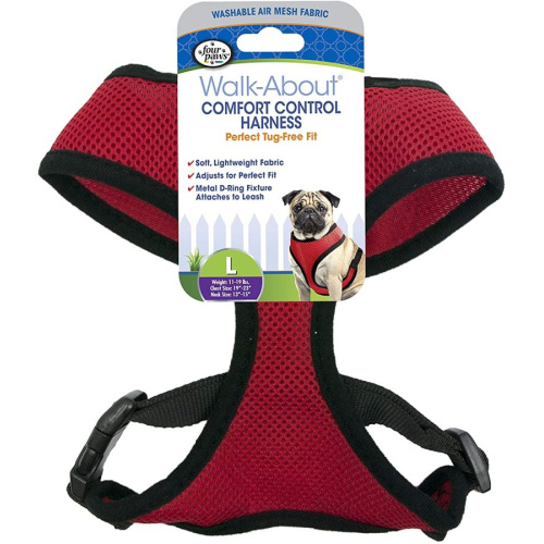 Four Paws Comfort Control Harness - Red - Large - For Dogs 11-18 lbs (19"-23" Chest & 13"-15" Neck)
