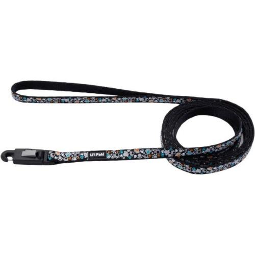 The Lil Pals Reflective Dog Leash - Teal and Orange Paws, features reflective material for added safety and a patented, one-handed E-Z Snap that makes attaching a leash to the dogs collar quick and easy. This leash uses 5/16" wide nylon that is perfect for petite dogs and puppies.
