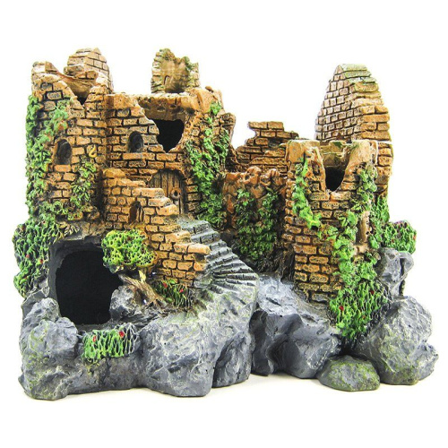 Blue Ribbon Forgotten Ruins Ornament. Authentic castle ruin, hand-painted in realistic detail. Featuring large swim-through chambers which fish love to explore. Safe for fresh and saltwater aquariums.