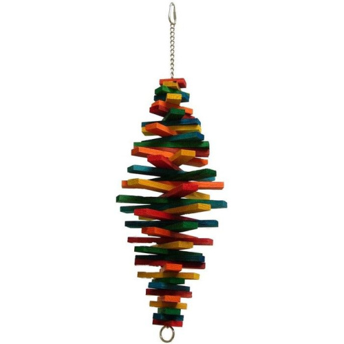 Studies have shown that toys play a critical role in keeping exotic birds healthy. The Zoo-Max Cocotte is designed to stimulate your bird by using a large variety of wood shapes, colors, and textures. Strung on a smooth metal chain with a c-clasp for securing to your birds cage.